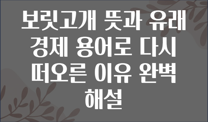 ๐ ๋ณด๋ฆฟ๊ณ ๊ฐ๊ฐ ๊ฒฝ์ ์ฉ์ด๊ฐ ๋ ์๋์ ๋ฐฐ๊ฒฝ๊ณผ ์๋ฏธ ๐