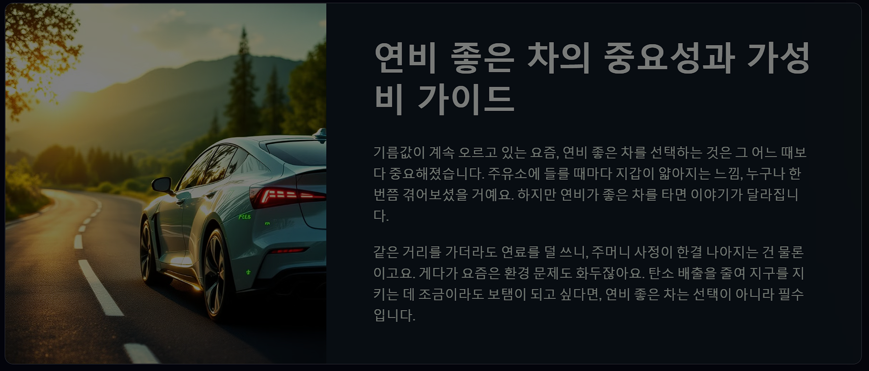 ๊ธฐ๋ฆ๊ฐ์ด ๊ณ์ ์ค๋ฅด๊ณ ์๋ ์์ฆ, ์ฐ๋น ์ข์ ์ฐจ๋ฅผ ์ ํํ๋ ๊ฒ์ ๊ทธ ์ด๋ ๋๋ณด๋ค ์ค์ํด์ก์ต๋๋ค. ์ฃผ์ ์์ ๋ค๋ฅผ ๋๋ง๋ค ์ง๊ฐ์ด ์์์ง๋ ๋๋, ๋๊ตฌ๋ ํ ๋ฒ์ฏค ๊ฒช์ด๋ณด์ จ์ ๊ฑฐ์์. ํ์ง๋ง ์ฐ๋น๊ฐ ์ข์ ์ฐจ๋ฅผ ํ๋ฉด ์ด์ผ๊ธฐ๊ฐ ๋ฌ๋ผ์ง๋๋ค. ๊ฐ์ ๊ฑฐ๋ฆฌ๋ฅผ ๊ฐ๋๋ผ๋ ์ฐ๋ฃ๋ฅผ ๋ ์ฐ๋, ์ฃผ๋จธ๋ ์ฌ์ ์ด ํ๊ฒฐ ๋์์ง๋ ๊ฑด ๋ฌผ๋ก ์ด๊ณ ์. ๊ฒ๋ค๊ฐ ์์ฆ์ ํ๊ฒฝ ๋ฌธ์ ๋ ํ๋์์์. ํ์ ๋ฐฐ์ถ์ ์ค์ฌ ์ง๊ตฌ๋ฅผ ์งํค๋ ๋ฐ ์กฐ๊ธ์ด๋ผ๋ ๋ณดํฌ์ด ๋๊ณ ์ถ๋ค๋ฉด, ์ฐ๋น ์ข์ ์ฐจ๋ ์ ํ์ด ์๋๋ผ ํ์์ ๋๋ค. ์ด ๊ธ์์๋ 2024๋ ๊ธฐ์ค์ผ๋ก ์ฐ๋น๊ฐ ๋ฐ์ด๋ ๊ตญ์ฐ์ฐจ TOP 5๋ฅผ ์๊ฐํ๊ณ , ๊ทธ์ค์์๋ ๊ฐ์ฑ๋น๊น์ง ์ฑ๊ธธ ์ ์๋ ๋ชจ๋ธ๋ค์ ์์ ํด ๋ณด์์ต๋๋ค. ์ฐจ๋ฅผ ์๋ก ์ฅ๋งํ๋ ค๋ ๋ถ๋ค๊ป ์ค์ง์ ์ธ ๋์์ ๋๋ฆฌ๊ณ ์ถ์ด์, ์ ๋ง์๊ณผ ์ ์ฑ์ ๋ด์ ์จ ๋ด๋ ค๊ฐ๊ฒ ์ต๋๋ค.