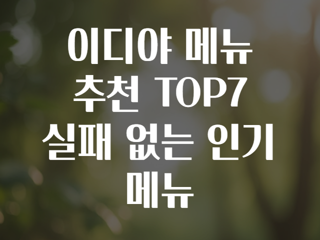 โ ์ด๋์ผ ๋ฉ๋ด ์ถ์ฒ TOP7 ๐