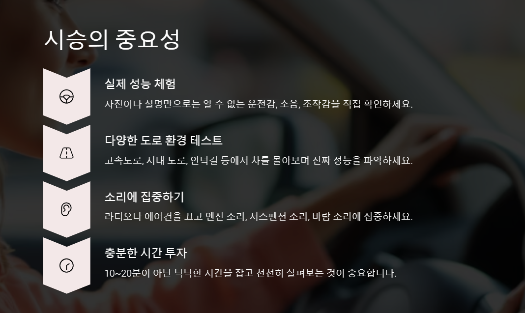 ์ค๊ณ ์ฐจ ๊ตฌ๋งค ์ ์ฐจ๋ ์ํ ์ ๊ฒ์ ์ค์์ฑ