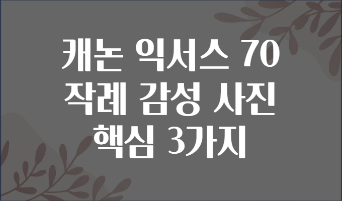 ๊ฐ์ฑ ์ฌ์ง์ ๋ณต์กํ ๊ตฌ๋๋ณด๋ค ‘์ฌํํจ’๊ณผ ‘ํฌ์ธํธ’์ ์ง์คํด์ผ ํด์. ์บ๋ ผ ์ต์์ค 70์ฒ๋ผ ์์ ์นด๋ฉ๋ผ๋ก๋ ์ถฉ๋ถํ ์ข์ ๊ตฌ๋๋ฅผ ๋ง๋ค ์ ์๋ต๋๋ค.