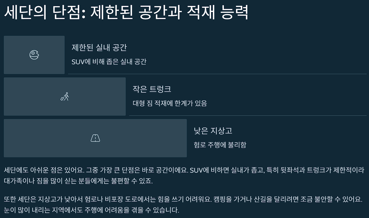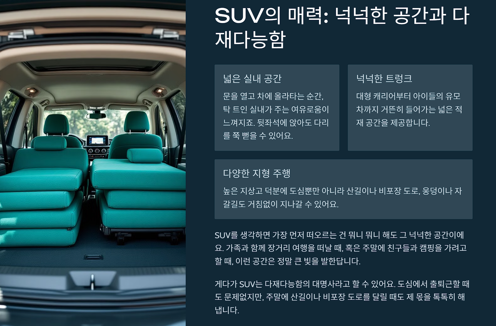 SUV์ ์ฅ์ : ๊ณต๊ฐ๊ณผ ๋ค์ฌ๋ค๋ฅํจ