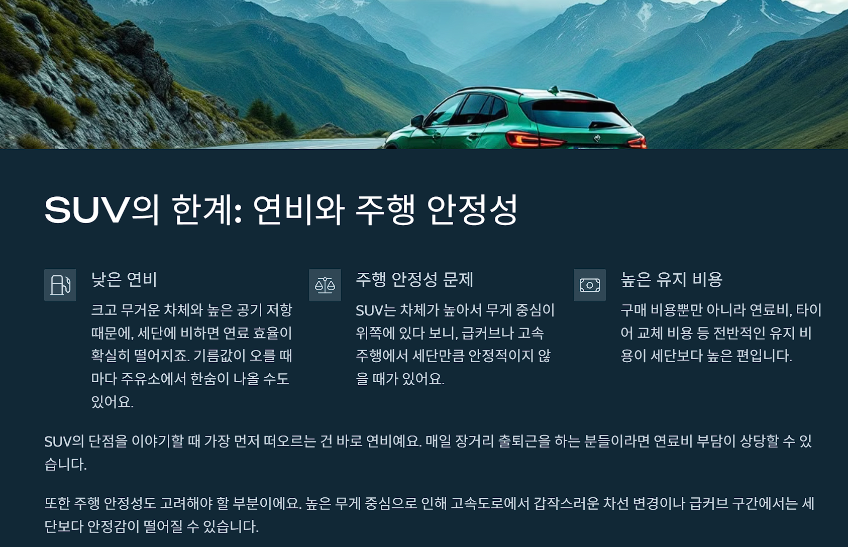 SUV์ ๋งค๋ ฅ๊ณผ ํ๊ณ