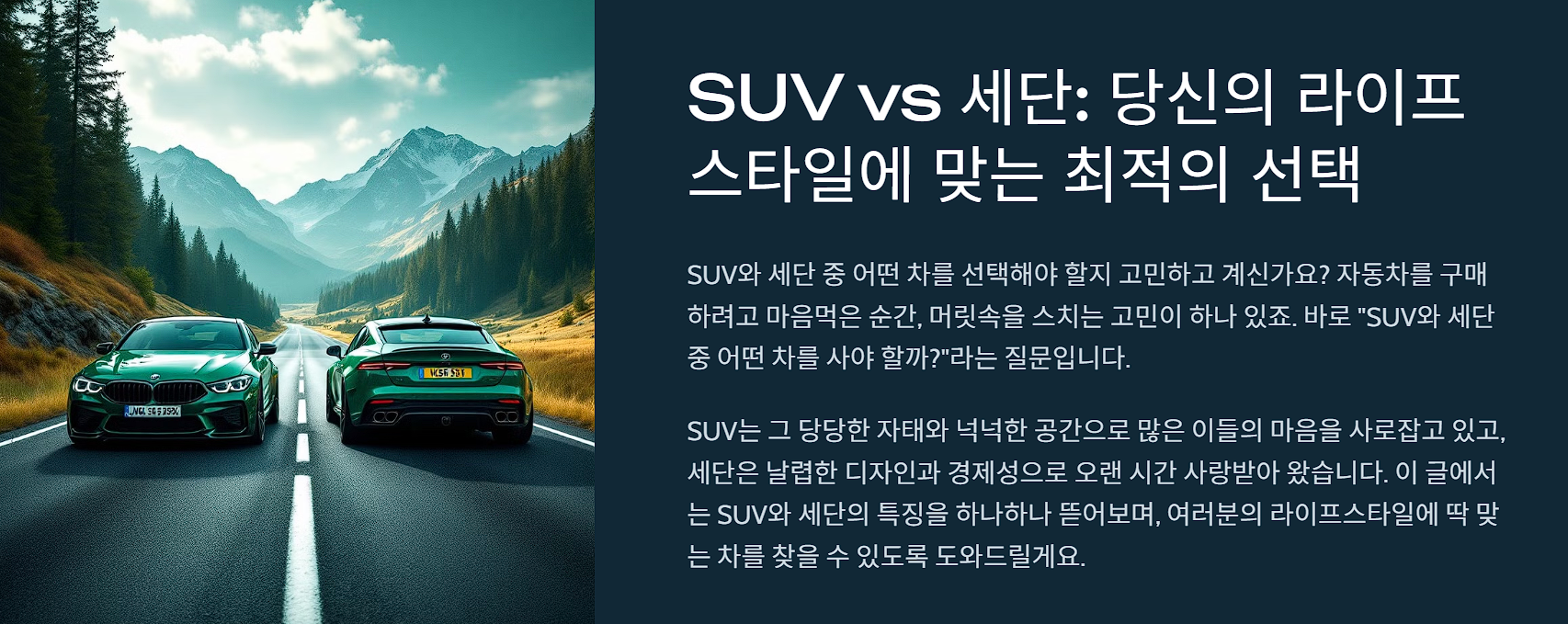 1. SUV์ ์ธ๋จ, ์ด๋ค ์ฐจ๊ฐ ๋ ์์ ํ๊ฐ์?